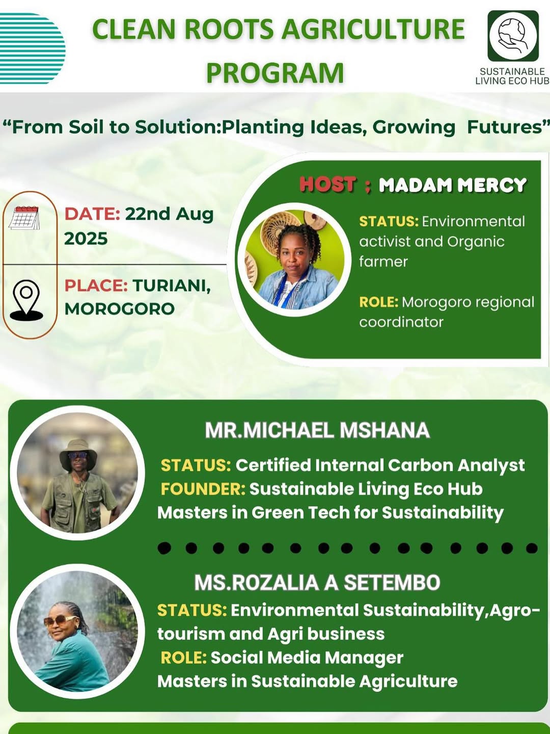 In response to these challenges, the Sustainable Living Eco Hub created the Clean Roots Agriculture Program (CRAP). This program is designed to equip farmers, youth, and local communities with the skills, knowledge, and tools to practice farming that is resilient, sustainable, and environmentally responsible.
